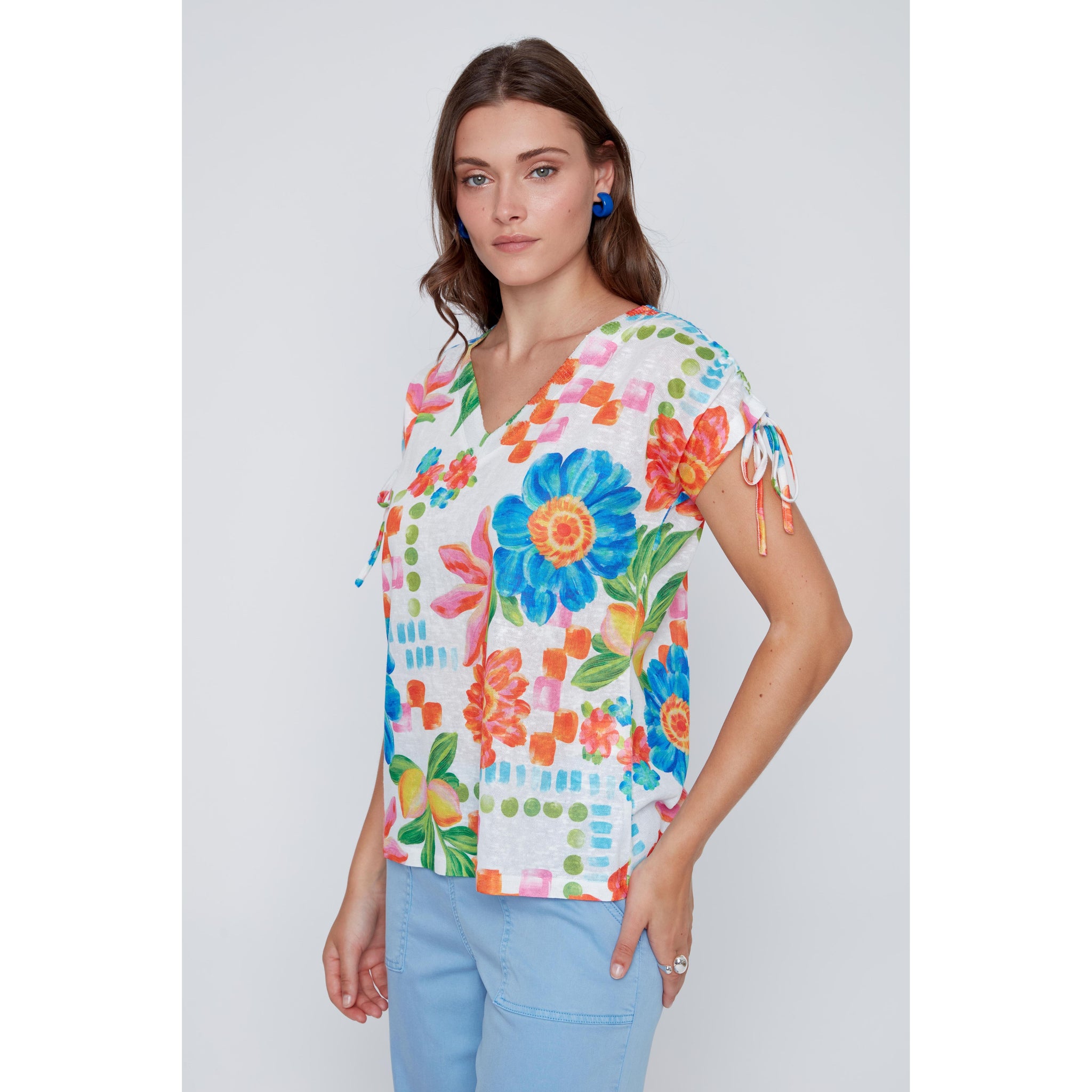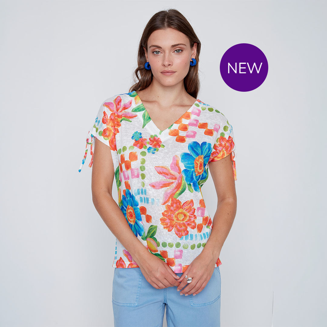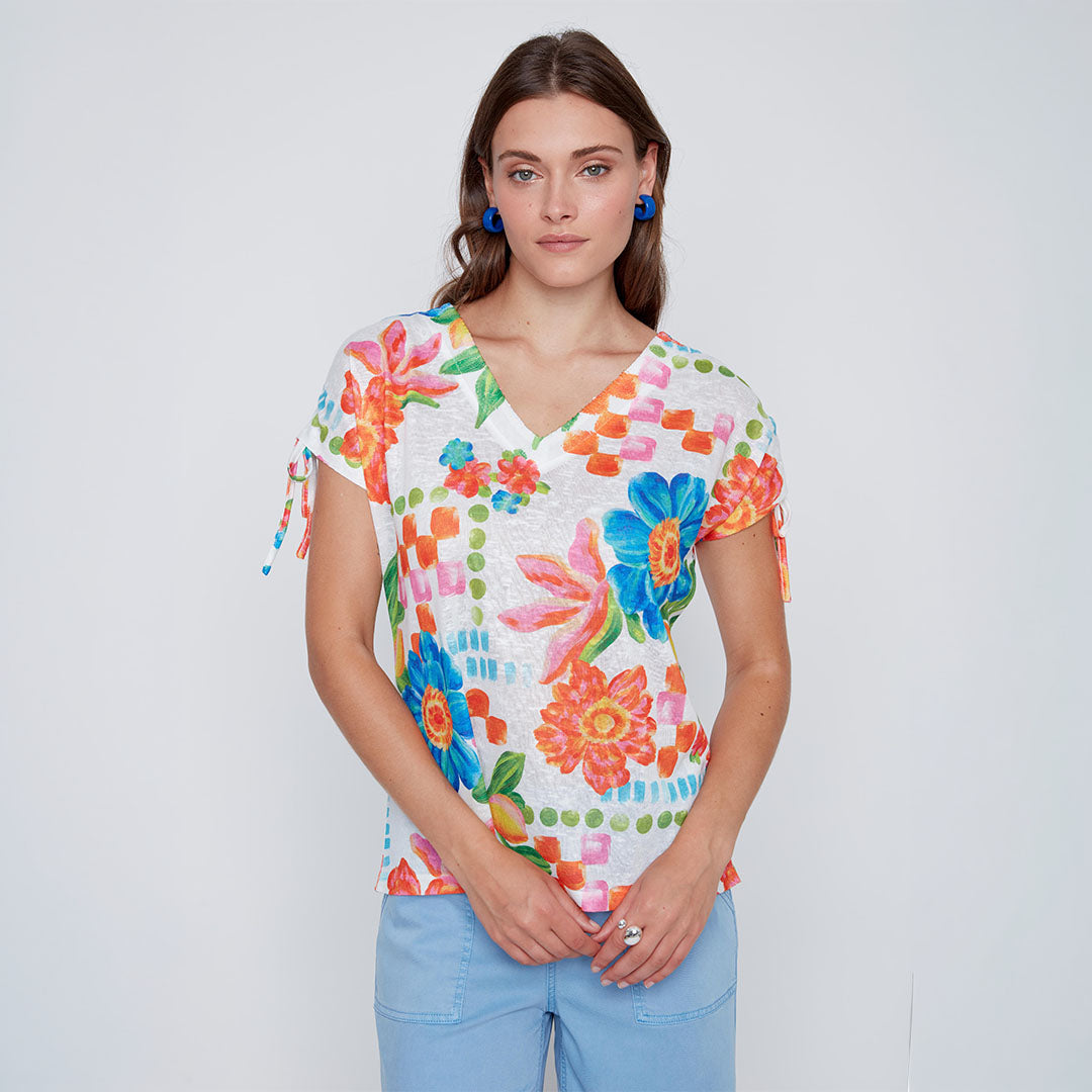 Coco Y Club - Flower Tie-Sleeve Top