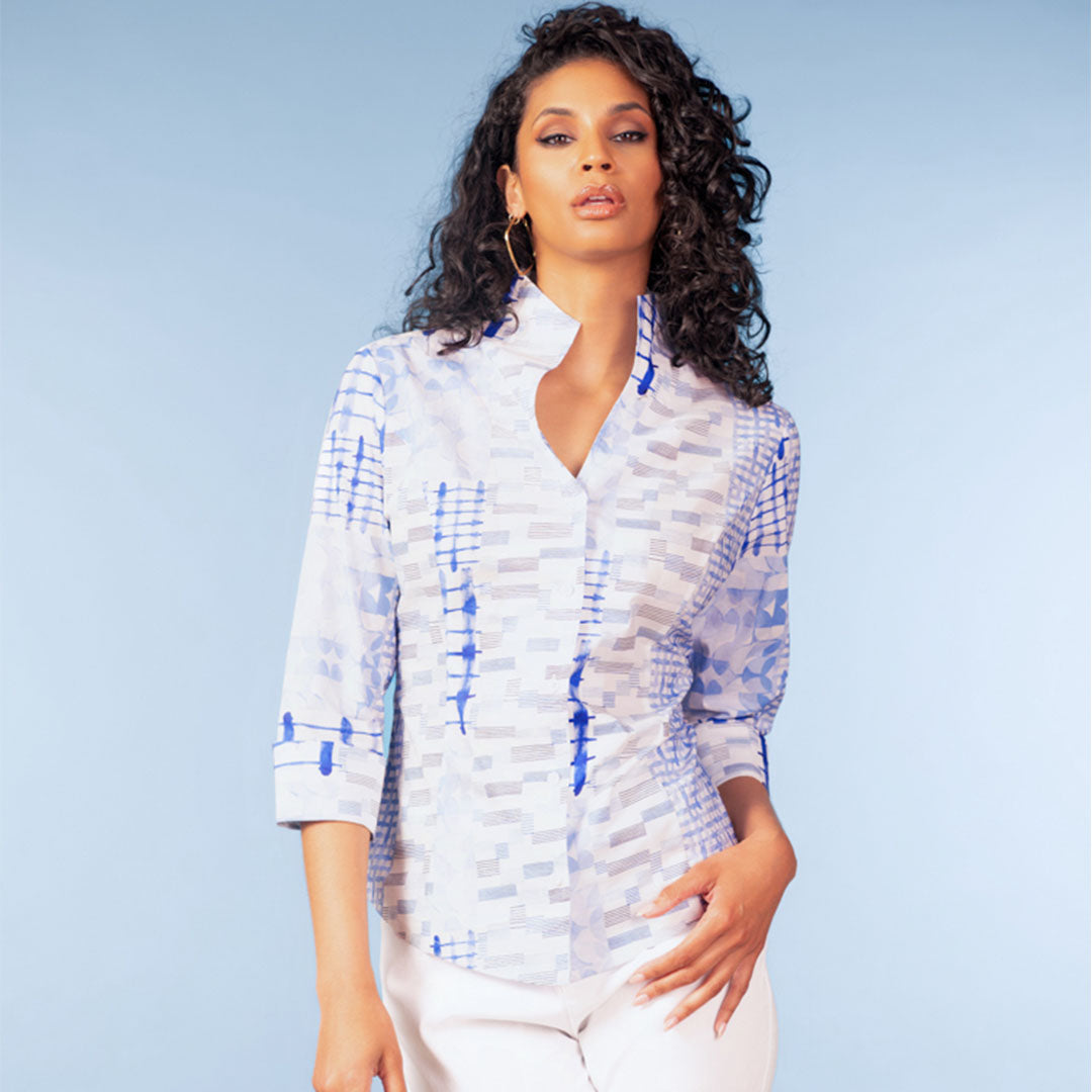 A47175 - Blue Abstract Blouse