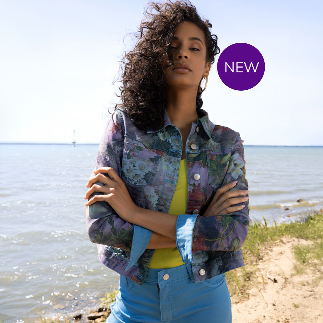 Alison Sheri - Reversible Floral/Turquoise Bomber Jacket