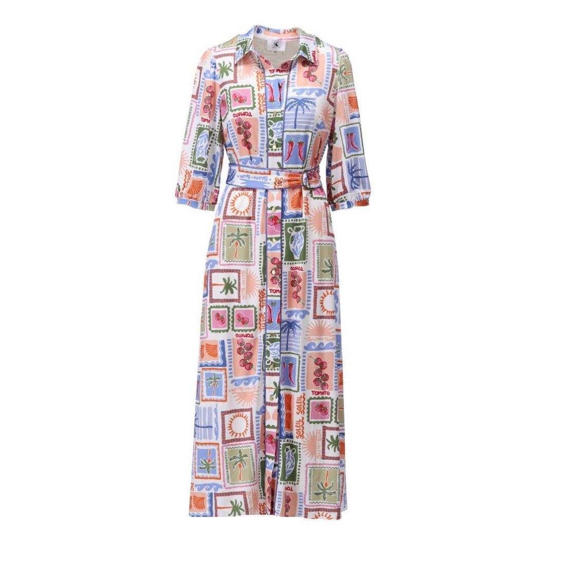K Design - ‘Paradise Postcards’ Button Through Belted Dress with Removable Belt