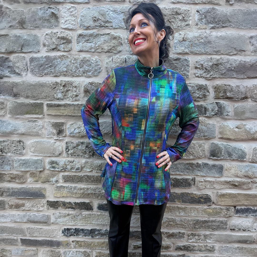 Et’Lois - Abstract Indigo Crinkle Zip Jacket